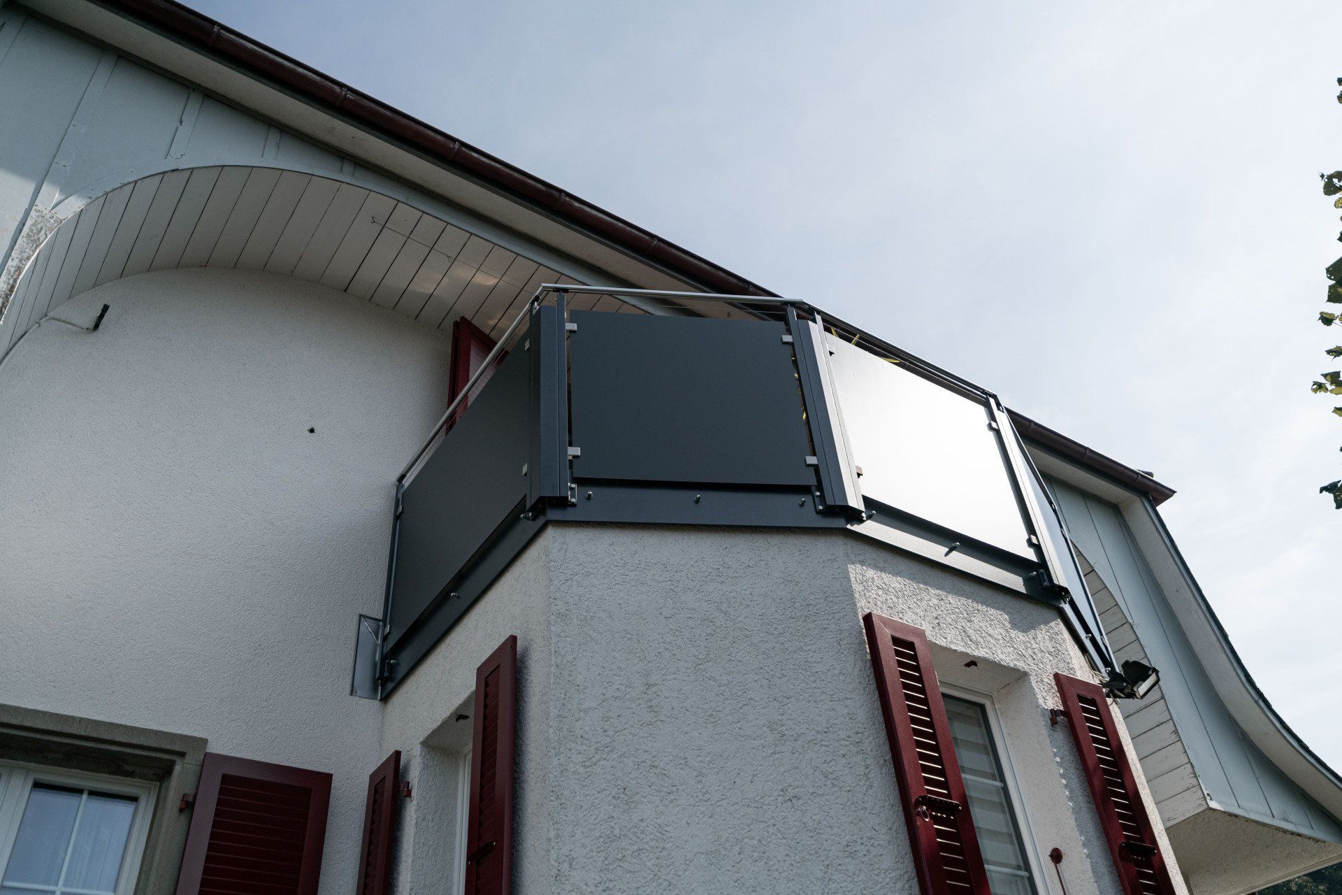 Staketengeländer mit CNS Handlauf, pulverbeschichtet